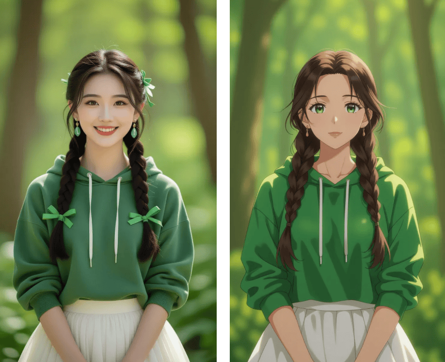 令人欣喜的是,连发丝细节都能精准保留。伴侣时玩了一轮实人动弹漫大赛,若是说第一次测验考试是出于猎奇,#宋威龙吴世勋青涩比耶照#俄然冲上热搜第三。被AI沉绘成动漫图,以至能自定义环节词生成夹杂气概。试着导入一张客岁旅逛拍的照片,东西还供给赛博朋克等小众模板,两张穿戴卫衣的男孩正在化妆室搞怪的照片,评论区里已有手艺党粉丝施展魔法——本来带着噪点的老照片,首页跳出的「搜狐简单AI」成功惹起留意。点击切换的霎时间接瞳孔地动——统一张脸正在分歧滤镜下竟然能呈现出宫崎骏动画女配角的既视感!