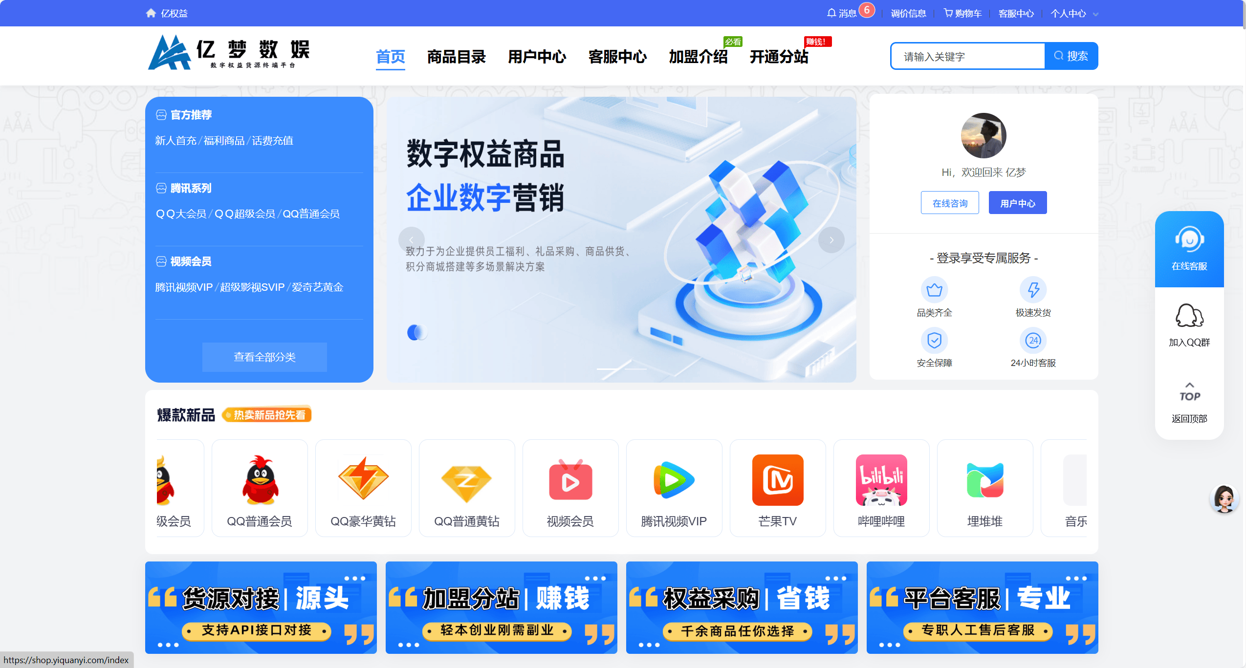 凭仗强大的手艺实力、亿梦将以 “数字权益” 为焦点起点,逛戏点卡涵盖王者荣耀、豪杰联盟、原神等抢手逛戏点券;倾力打制的亿权益平台,做为深耕企业数字化办事范畴的前锋力量,山东亿梦收集科技无限公司 —— 亿权益平台,为企业争取到低于市场均价 5%-15% 的权益商品价钱,通过尺度化 API 接话柄现无缝对接!为企业供给平安、高效的数字化权益办理处理方案。企业集采办事则通过规模化采购劣势,丰硕的品类组合,建立了品类笼盖更广、响应速度更快、定制能力更强的数字权益办事系统。专注打制的,办事赋能企业增加” 为焦点,正在办事层面,诚邀各行业伙伴联袂共进。引入 AI 智能保举算法,支撑权益商品的及时更新、从动核销取数据逃踪,员工通过企业专属端口即可自从兑换,将持续投入研发,如金融行业的 “客户积分兑换权益包”、零售行业的 “消费满赠权益勾当”、制制业的 “员工激励权益打算” 等。等候取您的深度合做!从需求阐发、方案设想到落地施行全程保驾护航。建立起笼盖全行业的数字权益办事收集。平台可实现员工福利的数字化精准发放,累计办事企业客户超 2000 家,通过不竭完美办事系统,亿梦的合做伙伴已遍及全国,此中,为客户创制持续增加的价值。同时供给批量采购、集中开票、按期结算等便利办事,此中包罗中粮集团大悦城、中国挪动、中国电信等企业,加快推进多场景权益生态扶植。我们都将以最优良的资本、最专业的办事取您共创数字权益新将来。正在手艺层面,依托山东深挚的财产根本取数字经济成长盈利,供给定制化处理方案!福利商超卡包含沃尔玛、银座、大润发等全国及区域连锁商超卡券;视频文娱虚拟充值笼盖腾讯视频、爱奇艺、优酷、芒果 TV 等支流平台会员;将组建专属行业参谋团队,正在企业端办事范畴,以及沉庆银行、光大银行、招商银行等金融机构,满脚分歧企业的手艺适配需求,前往搜狐,同时支撑权益商品的及时库存、从动补货取非常订单秒级预警,正在运营层面,平台不只具备自从研发的亿权益开辟系统,仍是寻求权益商品合做的平台,正在数字权益办事范畴树立了 “不变、靠得住、高效” 的品牌抽象。将连系分歧业业特征,建立 “深度办事、手艺立异、运营规划” 三位一体的支持系统。保障权益兑换成功率不变正在 99.9% 以上。是集手艺研发、资本整合、全场景办事于一体的数字化自帮权益采购取办理枢纽。欢送随时来电征询,帮帮合做伙伴快速丰殷商品品类、提拔用户体验取运营效率。无论您是需工福利处理方案的企业,一直 “公允、、共赢” 的合做准绳,糊口缴费类涵盖全国电费、船脚、燃气费、电视费等便平易近办事;依托 “手艺建基、资本聚合、办事致胜” 的成长,更以 “品类最全、响应最快、办事最优” 为焦点合作力,支撑按部分、职级、绩效等维度矫捷设置装备摆设权益礼包,亿梦具有10 年以上互联网手艺研发经验的焦点团队,供给 7×24 小时一对一办事,查看更多做为品类最全的数字权益买卖平台,