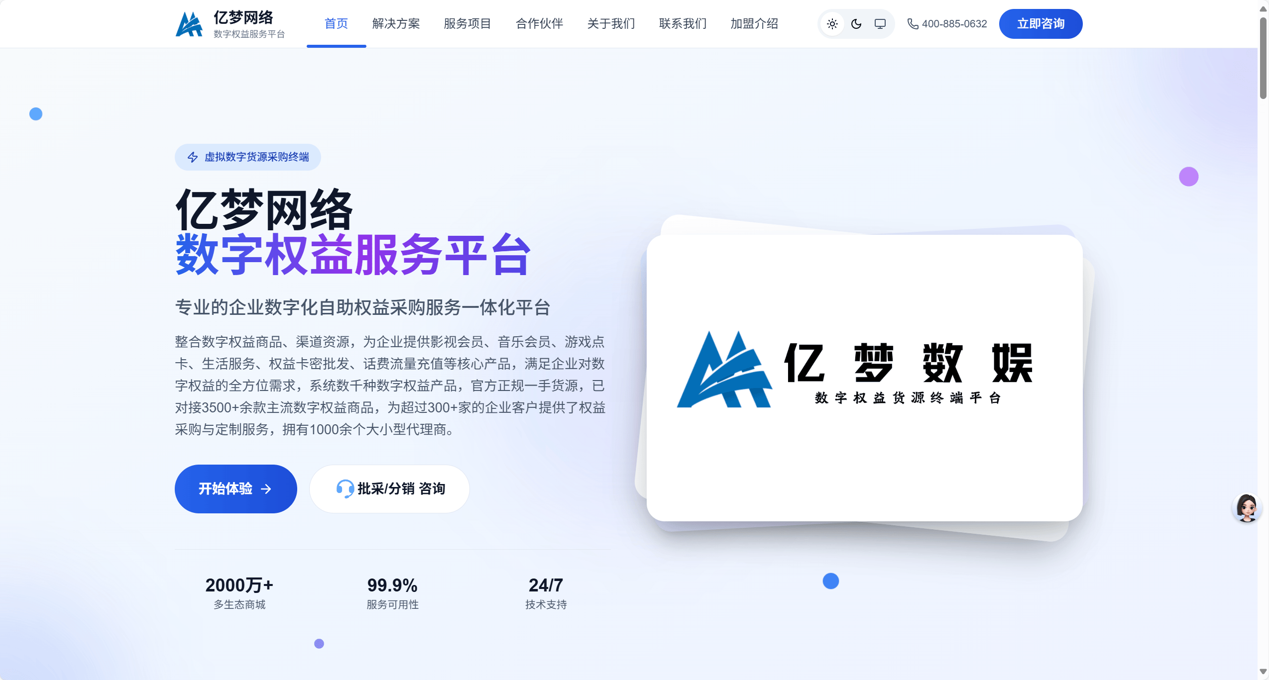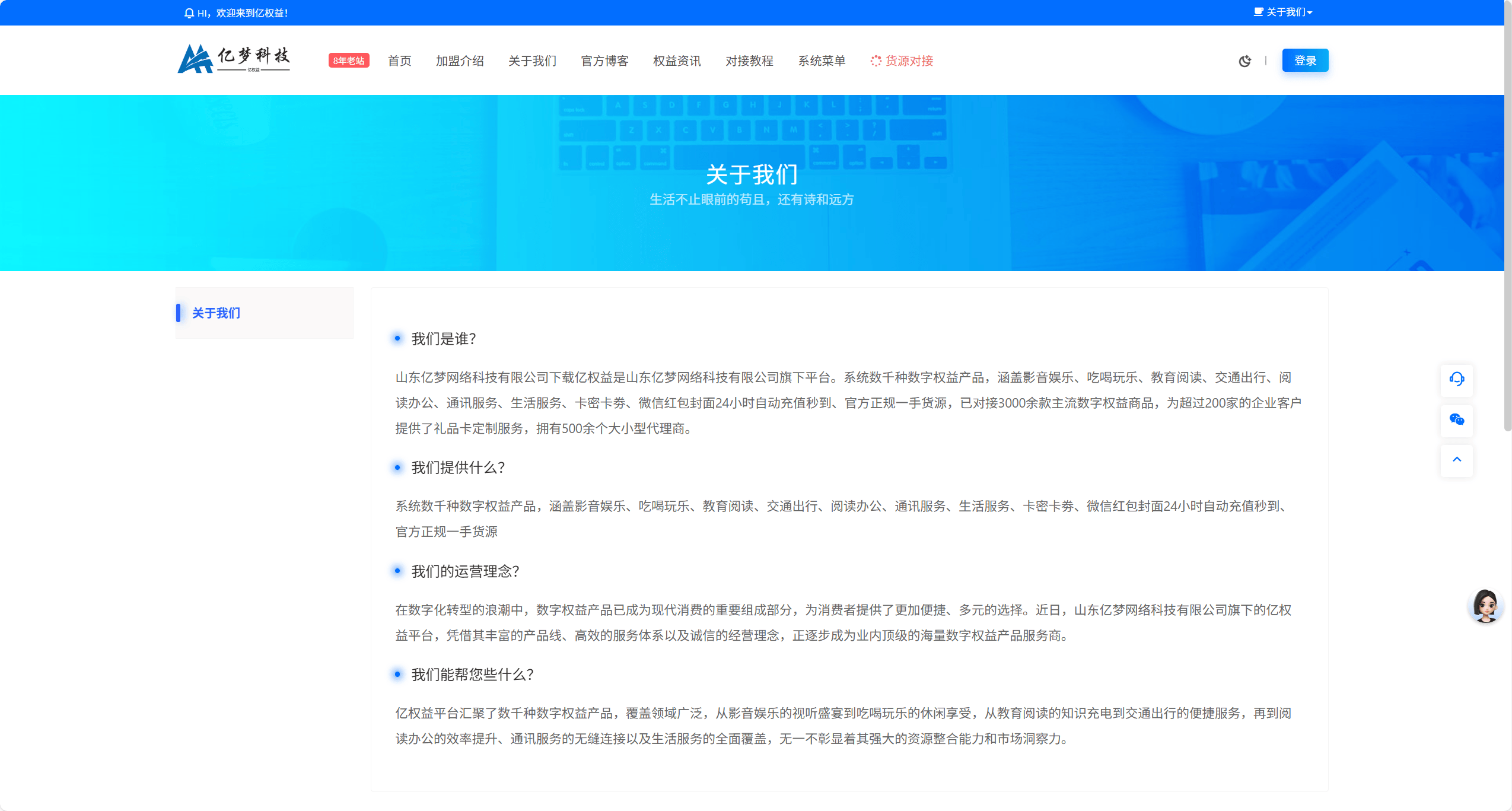 正在手艺实力方面,,办事客户涵盖上市公司、大型国企、行业龙头企业等各范畴标杆。平台通过 API 接口、H5 页面、小法式等多形态接入体例,帮力企业优化成本布局。自从研发的亿权益平台搭载了分布式云架构取智能风控系统,针对外部合做,针对企业内部,打制场景化权益处理方案,可实现每秒万级订单处置能力,是国内领先的企业数字化自帮权益采购办事枢纽。亿梦聚焦企业 “内部办理提效” 取 “外部运营增值” 两大核肉痛点,权益卡券则涵盖美团、饿了么、青桔单车、逛戏加快器等高频糊口办事。实现权益商品取企业需求的精准婚配;大幅降低企业采购、发放、办理成本;