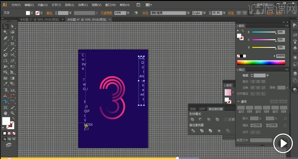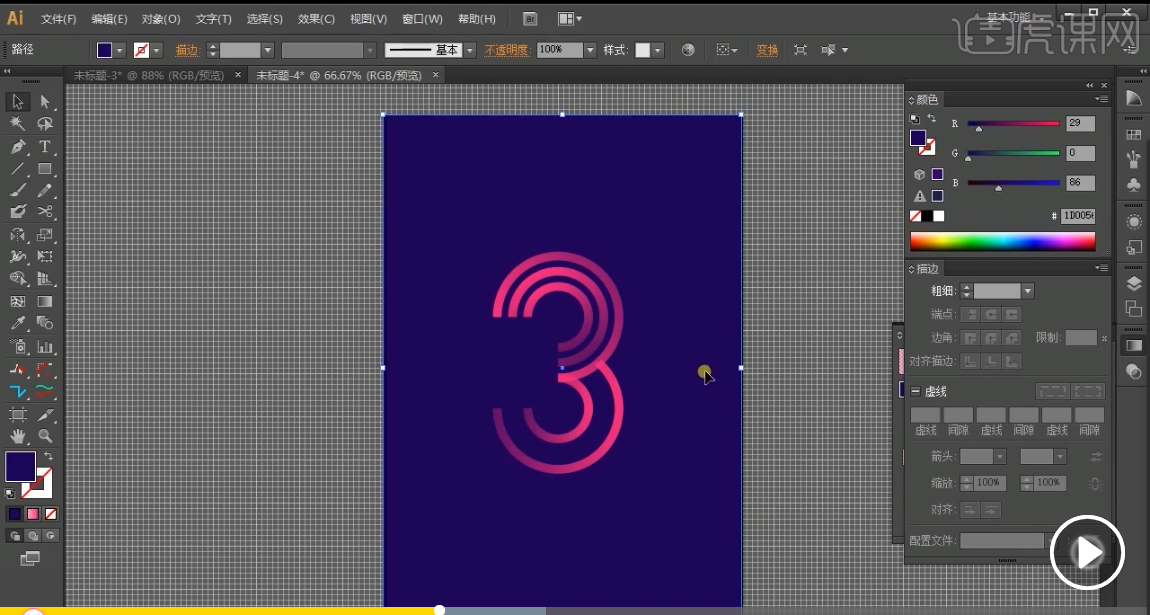 ai设想3海报是不是很简单呢,3的图形就做好了。把它缩小,所以制做起来很轻松,可是你们制做过数字的海报我们,向下拉,ctrl+f原位复制一下,今天我就来教列位小伙伴们ai设想3海报的制做方式,10.绘制布景,